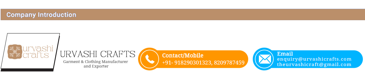 Urvashi Crafts" is a well-known manufacturer And Exporter of a trendy and flawless assortment of Ladies Western Wear. Incepted in the year 2001 at Jaipur (Rajasthan, India), we design these Fabrics as per current market trends.
